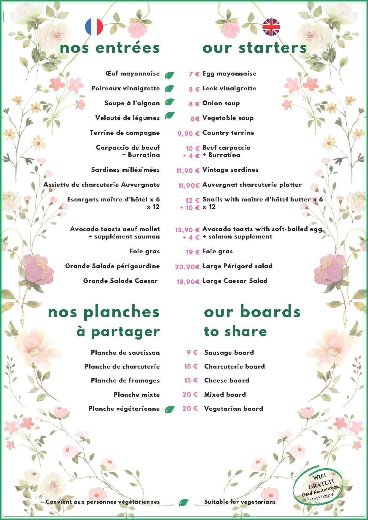 ● Gourmet accompaniments: complete your meal with our delicious accompaniments. Let yourself be tempted by the homemade fries, both soft and deliciously crispy, or the mash, soft and creamy. Or would you prefer lightly grilled seasonal vegetables? Not forgetting our original homemade sauces.