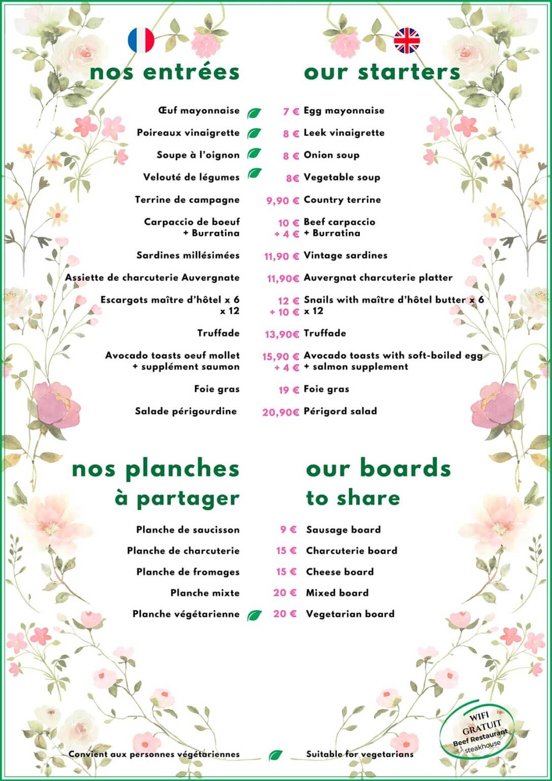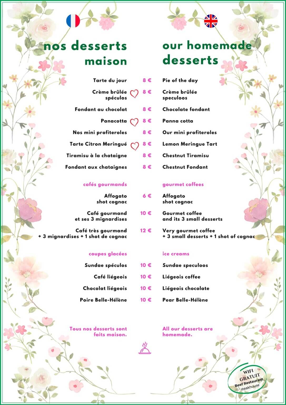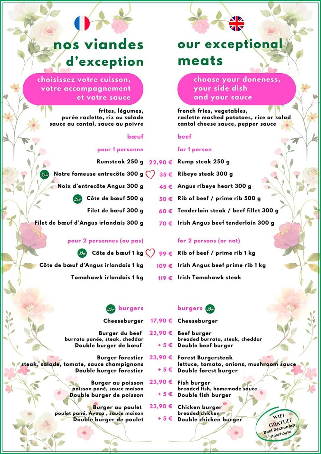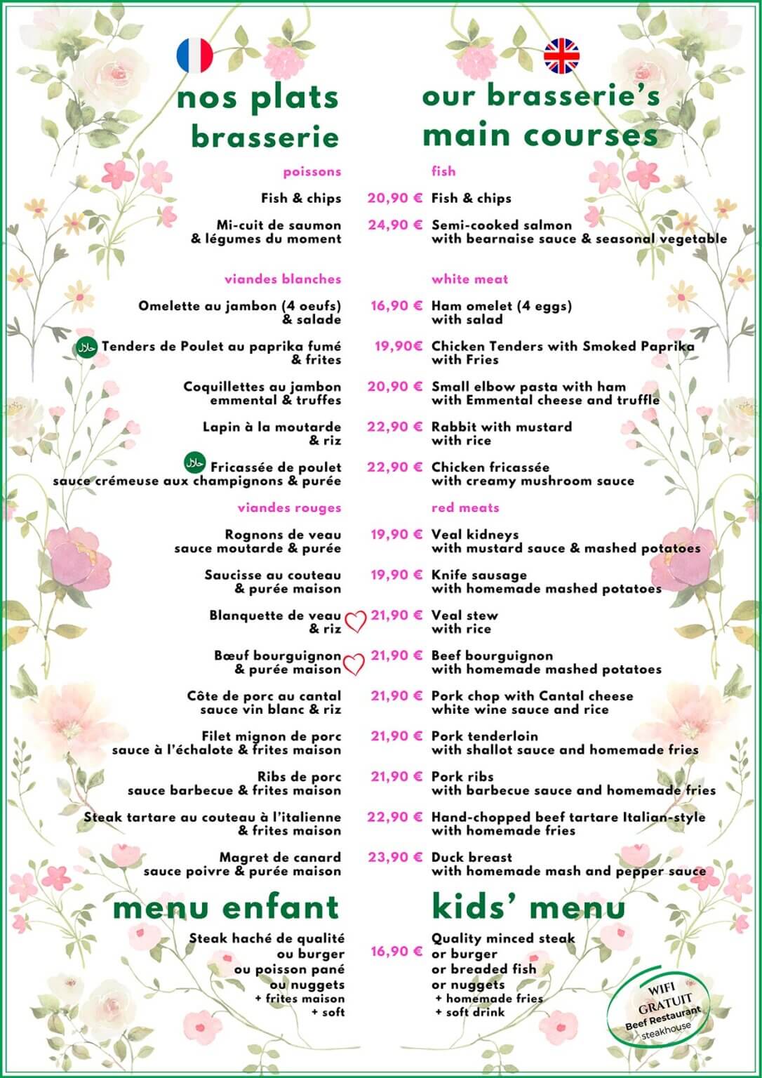 ● Gourmet accompaniments: complete your meal with our delicious accompaniments. Let yourself be tempted by the homemade fries, both soft and deliciously crispy, or the mash, soft and creamy. Or would you prefer lightly grilled seasonal vegetables? Not forgetting our original homemade sauces.