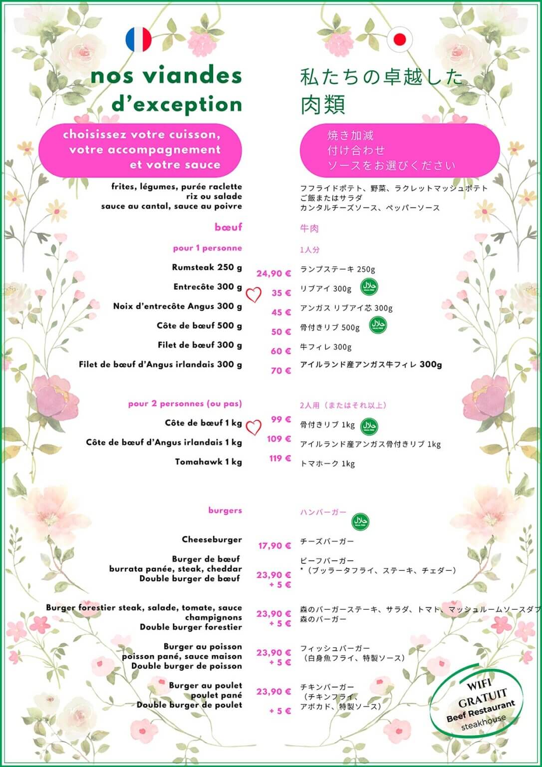 ● Gourmet accompaniments: complete your meal with our delicious accompaniments. Let yourself be tempted by the homemade fries, both soft and deliciously crispy, or the mash, soft and creamy. Or would you prefer lightly grilled seasonal vegetables? Not forgetting our original homemade sauces.