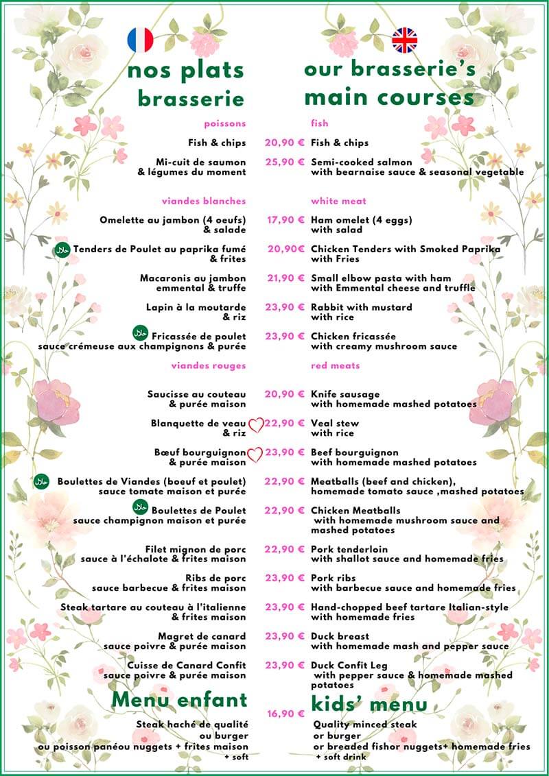 ● Le menu enfant : pour que vos enfants puissent également profiter d’un bon repas de qualité à petit prix, fait spécifiquement pour eux.