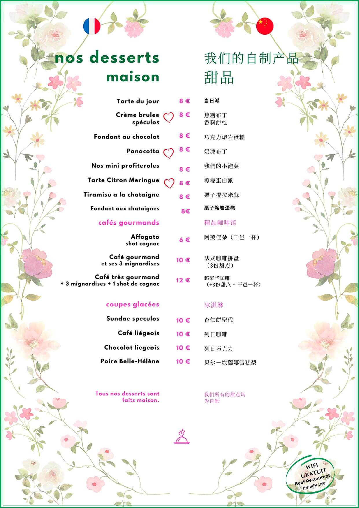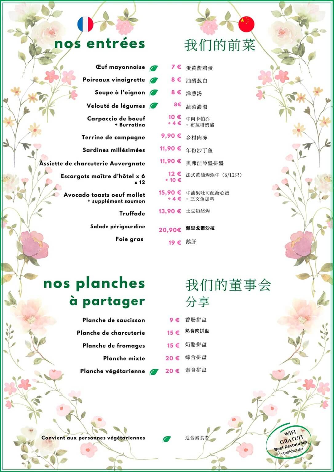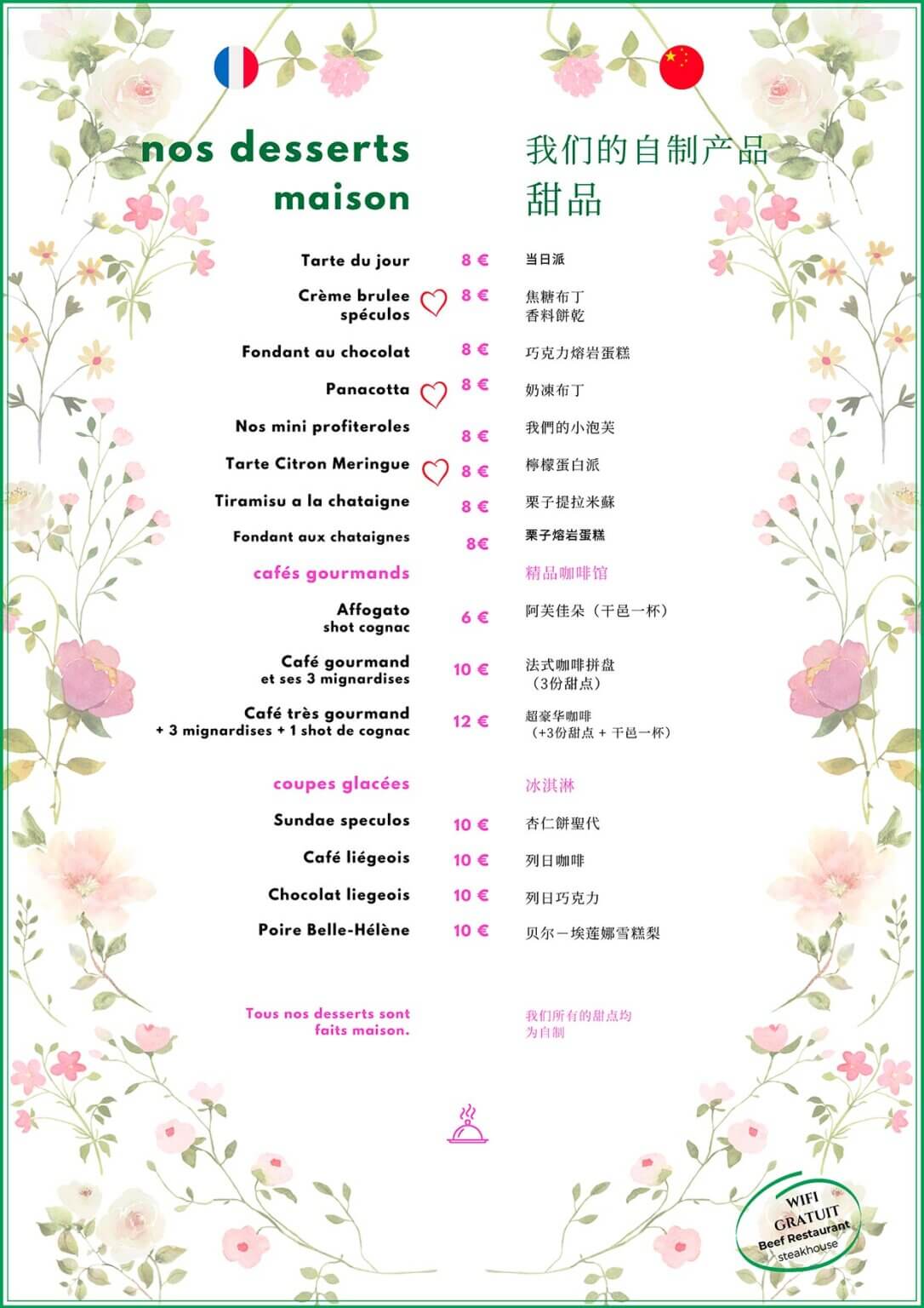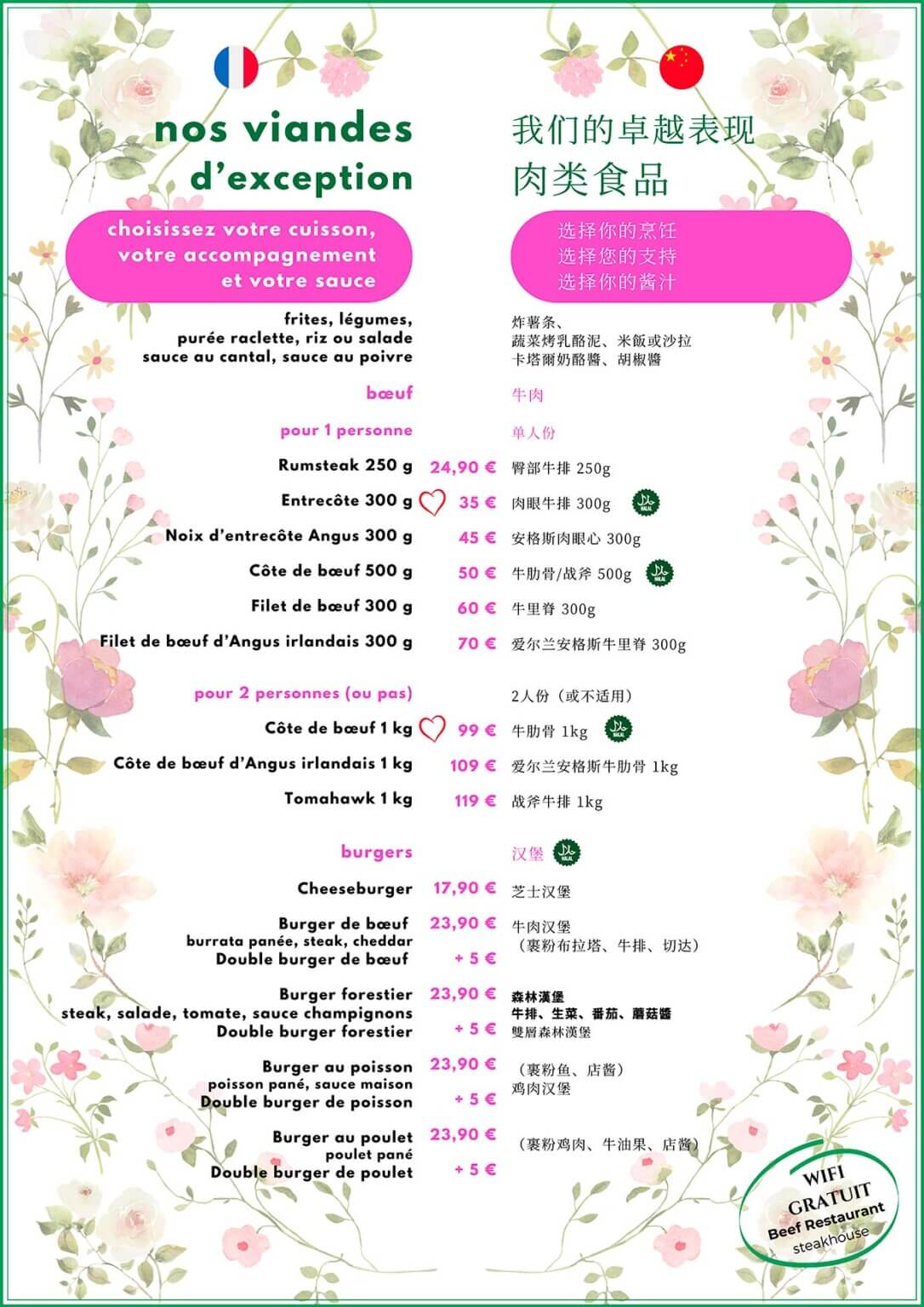 ● Gourmet accompaniments: complete your meal with our delicious accompaniments. Let yourself be tempted by the homemade fries, both soft and deliciously crispy, or the mash, soft and creamy. Or would you prefer lightly grilled seasonal vegetables? Not forgetting our original homemade sauces.
